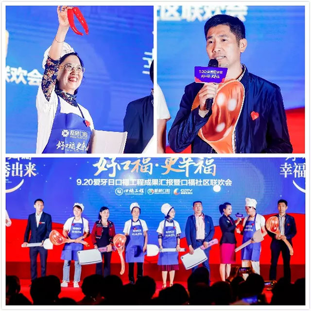 活動最后,成都電視臺相關負責人、新橋口腔代表、各大社區領導和超級廚神一齊走上舞臺,共同點亮口福工程公益主題“好口福·更幸福”,本次9·20愛牙日活動在大家齊唱《我和我的祖國》歌聲中圓滿結束!