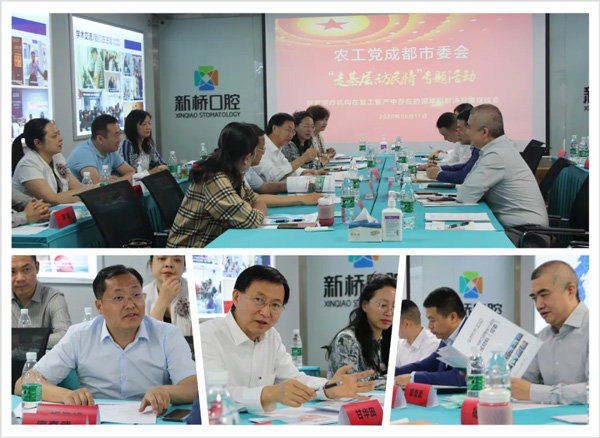 為深入開展“走基層、訪民情”專題活動,5月11日,農工黨成都市委會主委甘華田、副主委胡偉峰率隊來到新橋口腔成都院區衣冠廟店,開展專題調研活動。