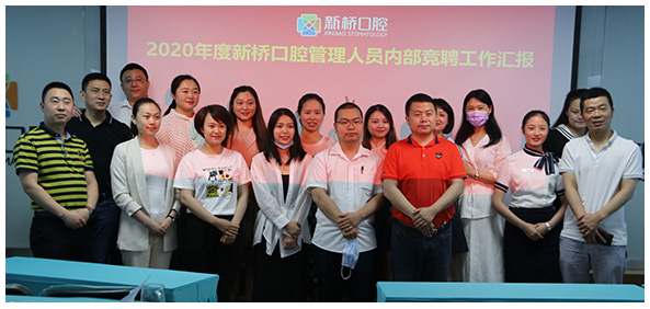在公開申請環節,共有17名員工報名參加,本著“自愿、公平、公正、競爭、擇優”的原則,2020年5月8日,成都新橋口腔總經理張宇攜評審團,聽取了有關2020年度新橋口腔管理人員內部競聘工作匯報。