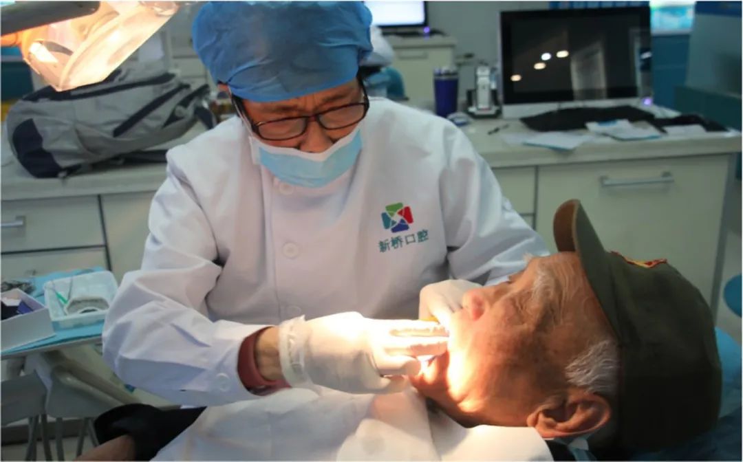 時光拉回十年前,在2011年的一次愛心義診中,新橋口腔醫院的醫生發現何鏡明老人多顆牙齒缺失。據他老伴介紹,老人缺牙已經十幾年了,長期無法正常進食,身體也日漸消瘦。 了解到他的情況后,新橋口腔決定為他義務提供口腔修復治療,并安排了國內修復權威、原華西口腔名老專家陳蕊然教授親自接診。