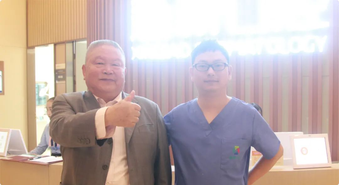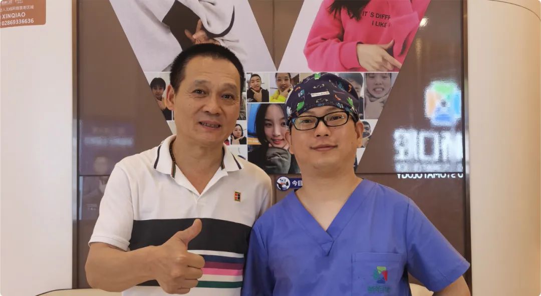 葉宏為成都市科技進(jìn)步獎(jiǎng)獲得者段老師種牙后合影