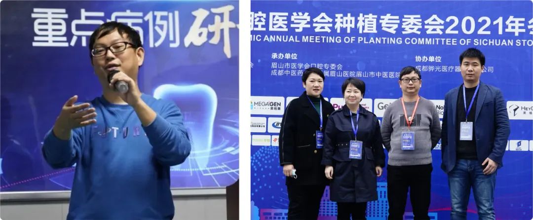 左圖:葉宏在新橋口腔重點(diǎn)病例研討會(huì)做主題分享 右圖右二:葉宏參加四川省口腔種植專委會(huì)2021年冬季學(xué)術(shù)年會(huì)