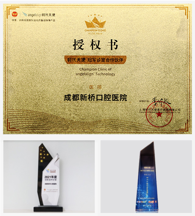 新橋口腔數字化正畸中心迄今已積累上萬例正畸案例,先后獲多位冠軍信任選擇,并連續三次榮膺時代天使西南地區“隱形正牙冠軍診室”,實力斬獲“四川口腔科金芙蓉團隊”等榮譽,為全民的口腔健康保駕護航,助力綻放更自信燦爛的冠軍微笑。