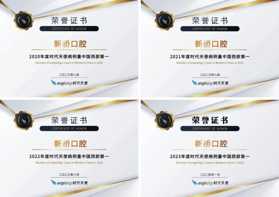 2024年2月27日,新橋口腔榮獲“2023年度時代天使案例量中國西部第一”榮譽認證,2月29日,“2023年度隱適美數字化矯正案例量四川第一”榮譽認證也花落新橋口腔。至此,新橋口腔以絕對優勢將隱形正畸領域兩大頂尖品牌——時代天使、隱適美2023年度案例量桂冠收入囊中,同時取得時代天使年度案例量西部地區四連冠!