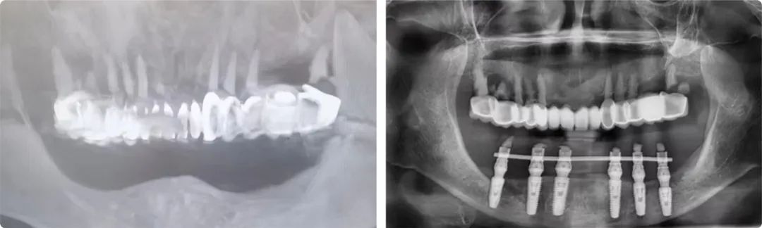 老人和家屬非常信任姜辰,接受了這個方案。術中植入了6枚植體,術后即刻修復完成戴牙,老人的咀嚼功能當天恢復。