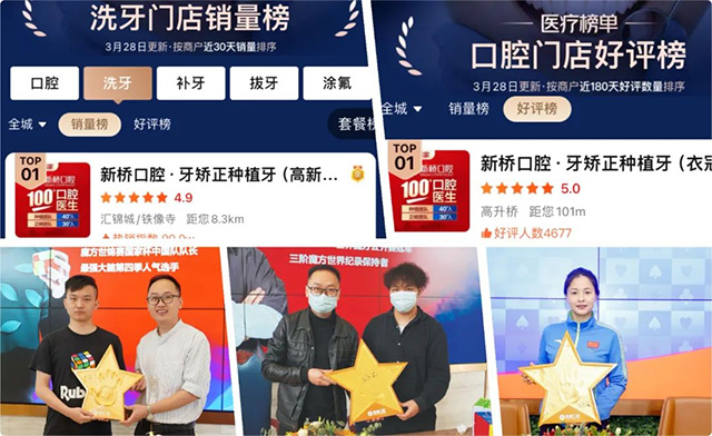 新橋口腔潔治項目2023年潔治量超50000人次,不僅位列本地口腔潔治銷量榜第一,好評數量也位列好評榜第一!其秘密武器——“十項潔治金標準”不僅是新橋口腔潔治項目的操作技術規范,也是新橋口腔潔治品質的有效保障,更是新橋口腔潔治銷量和好評能常年霸榜的重要原因。橋牌世界冠軍馮學鳳、世界吉尼斯紀錄保持者杜宇生和三階魔方中國冠軍王佳宇等也先后在新橋口腔體驗潔牙服務。