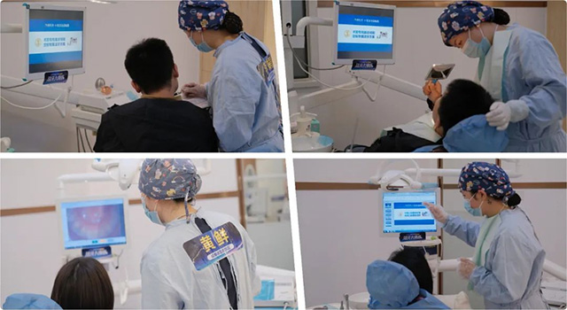 除了對潔治流程的熟練操作,簡單明了的口腔保健宣教也是本次比賽考核的重要指標。在術后的口腔保健宣教環節,通過潔牙師對顧客口內的內窺鏡拍照和菌斑檢測的分析,能很好地反應出潔牙師對顧客口腔情況做針對性指導的能力。最終,參賽的選手們憑借豐富的潔牙經驗和臨場反應,均順利完成潔治項目及比賽考核。