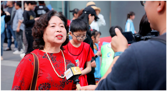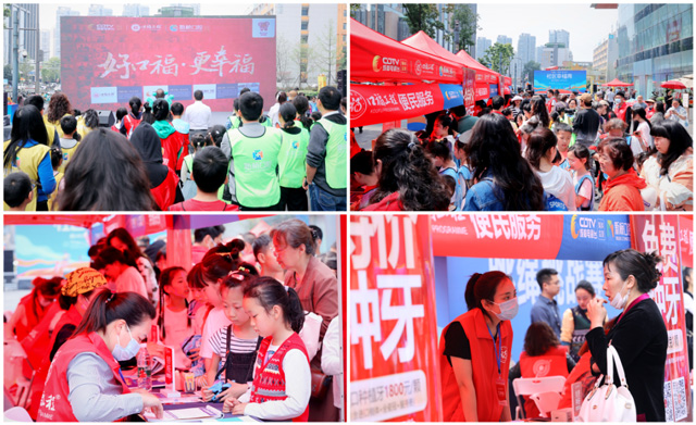 和挑戰(zhàn)者同樣緊張忙碌的,是口福工程公益服務(wù)區(qū)的志愿者們。因?yàn)榭诟9こ绦乱患靖@l(fā)布,口腔健康篩查、咨詢和口腔福利領(lǐng)取工作桌前都排滿了長(zhǎng)隊(duì),運(yùn)動(dòng)場(chǎng)上的歡呼聲和這里熱鬧的交談聲匯集在一起,將社區(qū)幸福秀的美好主題體現(xiàn)得淋漓盡致。水井坊社區(qū)居民肖阿姨在接受成都電視臺(tái)記者采訪時(shí)高興地說(shuō):“我們老年人在這項(xiàng)活動(dòng)中既鍛煉了身體,又領(lǐng)到很多口腔福利,真是一舉兩得!非常感謝各舉辦單位,希望口福工程越來(lái)越好!”