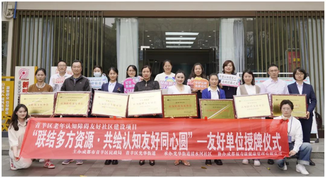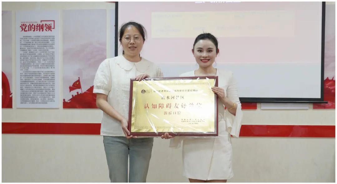 4月12日,青羊區老年認知障礙友好社區建設項目“聯結多方資源·共繪認知友好同心圓”——友好單位授牌儀式在成都市青羊區光華街道清水河社區黨群服務中心舉行,新橋口腔獲得“清水河社區認知障礙友好單位”榮譽授牌。