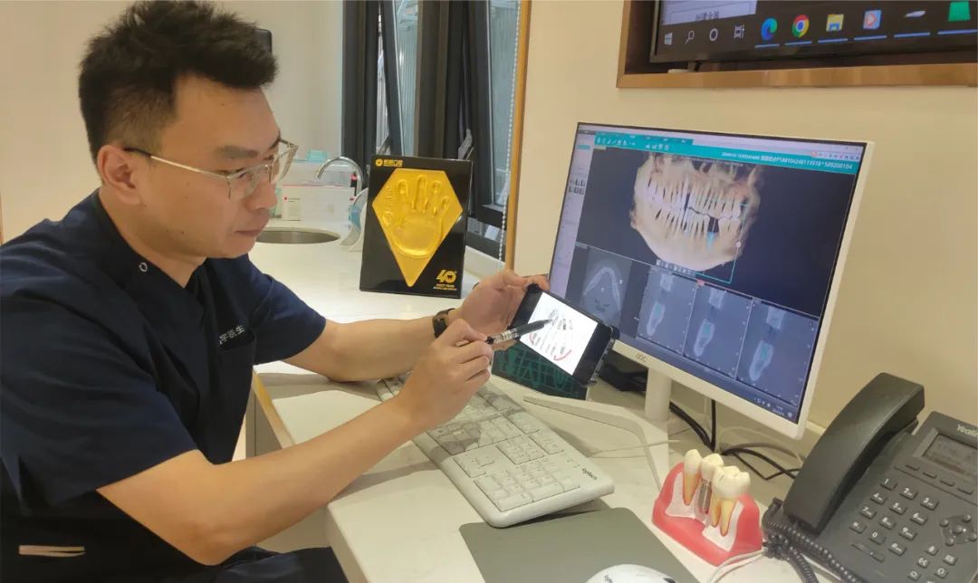 “我每一臺手術之前都要分析到位,不打無準備之仗。因為之前機構的手術室沒有顯示屏,手術時看不到患者的CBCT,只能憑著記憶和肉眼觀察去做,對于難度較大的案例,我都會在術前把模擬植入的位置擺好,存在手機里反復熟悉,做到心中有數。”