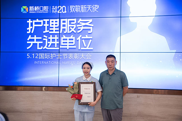 通過前期嚴(yán)格考評,新橋口腔成都衣冠廟院區(qū)謝敏、高新院區(qū)鄧麗、蜀漢院區(qū)劉歡、光華院區(qū)劉丹、玉雙院區(qū)黃悅和武侯院區(qū)方柳麟榮獲優(yōu)秀護(hù)士稱號;新橋口腔成都光華院區(qū)張進(jìn)、武侯院區(qū)何雨摘得優(yōu)秀護(hù)士長榮譽(yù);而代表集體最高榮譽(yù)的“護(hù)理服務(wù)先進(jìn)單位”花落新橋口腔成都武侯院區(qū)。