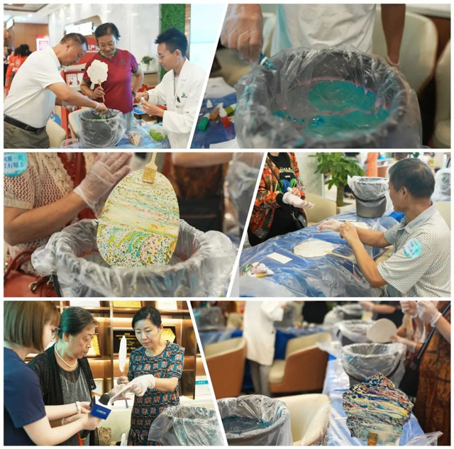 活動現場,在專業老師的指導下,來賓們紛紛動手調配漆料,親自體驗了非遺漆扇制作的過程。在各自的巧思和巧手之下,一把把獨一無二的扇面逐漸浮出水面,或落霞繽紛、青山如黛,或煙花三月、星河入夢......攜這把穿越時光的美好漆扇歸家,在每一次的搖曳中,盡得清涼與風雅。