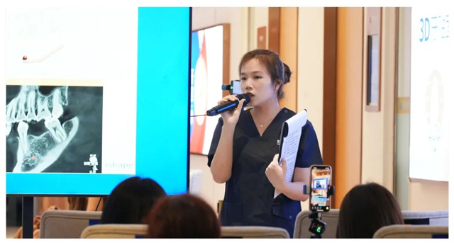 術前,李丹主任為大家介紹了數字化種植手術的特點和優勢:“通過3D口掃技術獲取牙齒和牙槽骨的數字化影像,在高精度數據的支持下,醫生能夠定制個性化的種植方案。”李丹主任表示:“數字化技術對種植體植入位置、深度、方向的精準定位,對經驗豐厚的醫生來說簡直是如虎添翼,對后期的種植修復也相當有益。”