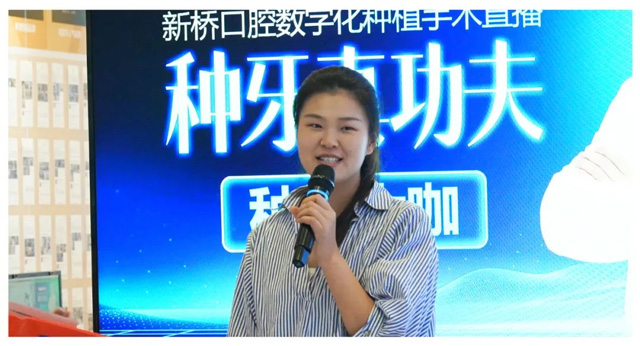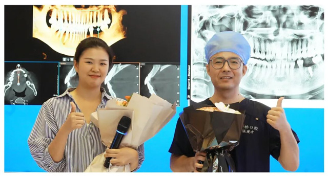 隨后,成功種牙的陸女士也來到臺前,向所有觀眾分享自己的手術體驗:“因為我的家人已經在新橋口腔成功種牙,所以我對此次手術是期待大于恐懼的。實際體驗下來,整個過程幾乎沒有痛感,而且很快很輕松,這也讓我更相信新橋口腔的實力與口碑!”