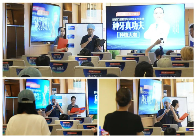 上午10:20分,備受矚目的手術直播正式開始。通過實時轉播大屏,現場觀眾見證了吳建方醫生有條不紊地進行術前局部麻醉、備洞、植入植體、嚴密縫合等一系列步驟。游刃有余的操作過程,讓大家對新橋口腔的“種牙真功夫”有了更直觀深刻的印象。
