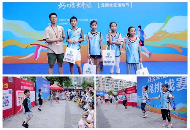 跳繩挑戰(zhàn)賽是種牙口福工程進(jìn)社區(qū)的經(jīng)典IP,活動現(xiàn)場,只見數(shù)十名小選手摩拳擦掌、蓄勢待發(fā),哨音吹響后便立刻搖動手中的繩索,你追我趕、分毫不讓。觀眾們紛紛為其加油鼓勁,也因緊張的賽事而激動不已。經(jīng)過一輪又一輪的激烈角逐,最終張可嵐和何云梓晨兩位小選手以一分鐘180個的驚艷成績,雙雙奪得此次龍騰社區(qū)站跳繩挑戰(zhàn)賽的冠軍。