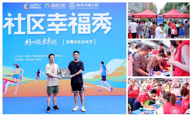 今天(2024年7月27日)上午,新橋口腔與成都電視臺攜手搭臺,為龍騰社區(qū)帶去了新一輪種牙口福工程社區(qū)幸福秀!輕歌曼舞、運動PK、口腔知識競答,居民們?nèi)橥度耄蚕硪粓鼋】迪矘返男腋J⒀?