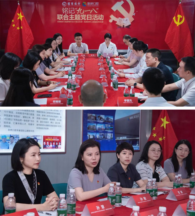 9月18日,在“九一八事變”93周年之際,成都新橋口腔醫院黨支部聯合招商銀行成都青羊支行黨總支部舉辦了“銘記‘九一八’聯合主題黨日活動”。