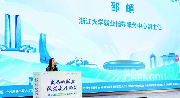 浙江大學(xué)就業(yè)指導(dǎo)服務(wù)中心副主任邵頔對(duì)來(lái)自成都市的眾多企事業(yè)單位表示了歡迎,她介紹了浙江大學(xué)的悠久歷史以及辦學(xué)優(yōu)勢(shì),并表示新時(shí)代的浙大學(xué)子將繼續(xù)發(fā)揚(yáng)先輩們求真務(wù)實(shí)的治學(xué)精神,為祖國(guó)建設(shè)發(fā)揮出自己的力量。