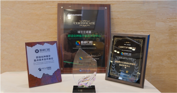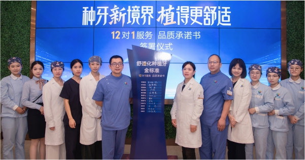 發布會現場,新橋口腔舒適化種植牙八項金標準首次對外公布;由12位醫護代表組成的舒適化種植牙團隊成員聯合簽署品質服務承諾書;全球四大知名種植體品牌為新橋口腔頒發舒適化種植牙認證授牌:新橋口腔半全口舒適化種植牙顧客現場分享“笑著走出手術室”的診療體驗。