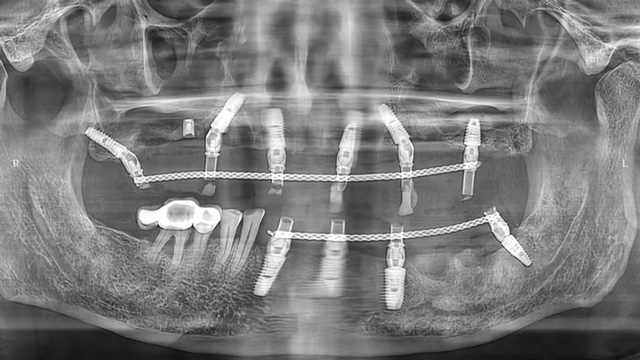 作為醫生,都希望盡量為患者保留天然牙,特別是面對吳叔叔這樣一位69歲的腫瘤術后患者。但經過評估后發現,他上頜剩余的牙齒情況都很差,沒有保留價值,下頜僅有4顆牙可以保留。