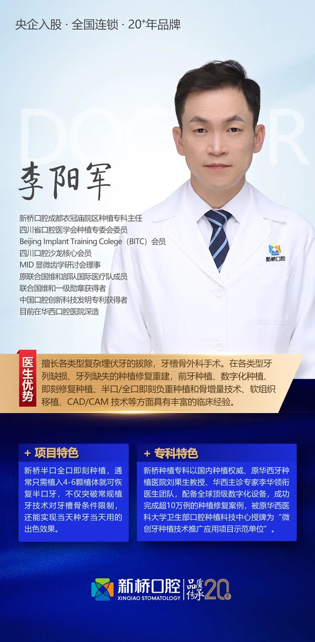 新橋口腔成都衣冠廟院區(qū)種植專科主任李陽軍
