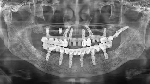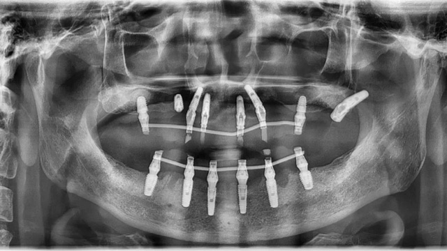 “首先,他在上頜只剩下4顆牙后又拖了兩三年才去治療,這是非常不可取的,造成的直接后果就是種植難度增大,費(fèi)用增加;其次,他之前的種植方案也存在一些問題。”