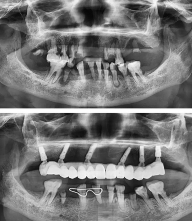曾經,一位八十多歲的阿姨,其上牙全是爛牙根,由于就醫不便,牙齒問題一直被擱置。韓沛接診后發現,阿姨骨量極差,骨頭很薄,進行半口種植手術存在一定難度。面對復雜的牙齒狀況和聽不懂的專業術語,阿姨和家屬有些慌張與迷茫。