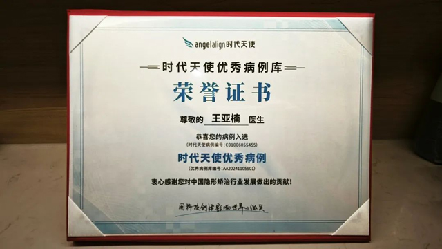 據王亞楠醫生介紹,獲獎的是一個比較復雜的青少年隱形矯治病例。“整個治療周期長達三年,時間長、難度大,這個病例能夠順利完成,和我們口外醫生的高超技藝,和小患者及家長的高度配合分不開。很高興能獲得評審專家的肯定,我會再接再厲!”