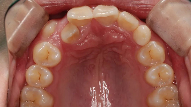 據了解,位于腭側的多生牙緊挨著已經替換完的1號恒牙(門牙),如不拔除會影響整個牙列的整齊度,后期也可能損傷1號牙的牙根,導致這顆牙齒松動甚至脫落。