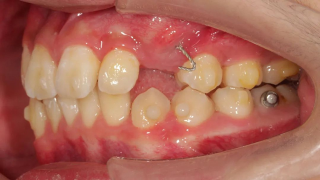 談到具體的治療方案,王亞楠醫生表示,整體的治療步驟是先拔除多生牙,一周后拆線,拆線當天拔除滯留乳牙,并對埋伏阻生尖牙行開窗術,通過粘貼牽引扣進行牽引,一周后開始佩戴隱形牙套。