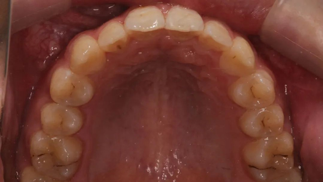 據介紹,這個病例最復雜之處就是阻生牙的牽引。從矯正開始,醫生以目標為向導制定矯正步驟,利用隱形牙套的優勢,以及牙根可視化引導牙齒走向目標位,過程中密切關注阻生尖牙的方向及萌出情況,治療過程中不斷根據具體情況進行調整牽引方向和力的大小,牽引治療幾乎貫穿了矯正的全過程。