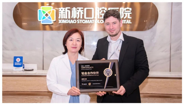 2025年4月25日,德國BEGO種植系統亞太區總監Tobias Speicher一行蒞臨新橋口腔成都衣冠廟院區,實地調研其作為“德國BEGO舒適化種植牙臨床示范中心”的臨床診療、設施環境及服務質量,并授予新橋口腔“鉑金合作伙伴”獎牌,標志著雙方合作邁向新臺階。