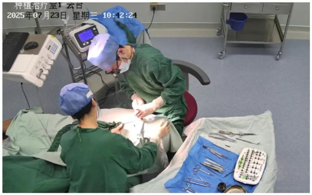 當直播鏡頭切入手術(shù)室,全場目光聚焦于新橋口腔成都總院種植專科主任李陽軍的雙手。李陽軍主任擁有二十余年口腔臨床經(jīng)驗,并以數(shù)萬例成功種植案例鑄就口碑。手術(shù)臺上,他手法嫻熟如行云流水,僅用15分鐘便為李女士完成拔牙、植骨、種牙全流程操作。