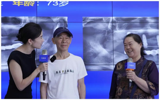 73歲的趙先生今天攜老伴一同來到活動現(xiàn)場,這對夫婦都是新橋口腔種植牙顧客。剛完成半口即刻種植手術(shù)拆線的趙先生,自信地向大家展示自己整齊美觀的新牙。站在一旁的老伴也深有感觸地說:“我們跑了好幾家醫(yī)院,最終選擇了新橋口腔。現(xiàn)在種好了牙,什么東西都能吃,我們非常滿意!”