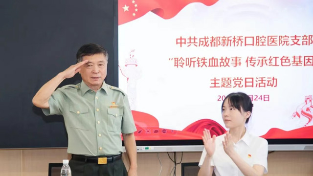 中國共產(chǎn)黨成都新橋口腔醫(yī)院支部委員會宣傳委員、新橋口腔臨床一線的黨員醫(yī)生代表王學鋒在發(fā)言中表示,“老一輩革命軍人用鮮血和生命換來了今天的和平與繁榮。作為新時代的醫(yī)務工作者,我們肩負著守護生命健康的重大責任,我們要傳承他們的精神,團結協(xié)作,做好群眾口腔健康的‘守門人’,用專業(yè)與責任踐行醫(yī)者使命。”