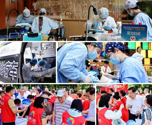 新橋口腔多年來始終秉持公益初心,作為“優秀志愿者服務單位”、青羊區退役軍人服務超市聯盟單位、成都市兒童口腔疾病綜合干預項目執行單位,在口腔醫療領域充分發揮專業優勢,通過組建便民醫療服務隊,并啟用數輛口腔移動診療車,常年面向社會開展便民醫療服務與多樣化志愿者活動。定期走進校園、社區、企業,讓專業醫療資源觸手可及,在一次次溫暖實踐中,將“全口、全家、全生命周期”的口腔健康理念落地生根。
