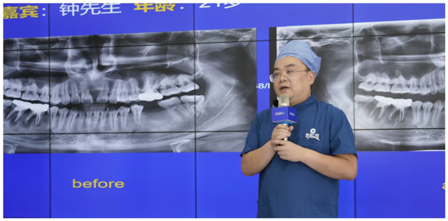 與此同時,兩位專業解說也通過實時畫面,為觀眾講解了手術中的關鍵操作與技術要點——從面部消毒到備洞精度,再到植體植入,每一個細節都體現著規范化醫療的質量把控,極大提升了觀眾對種植牙手術的認知水平和辨別能力。