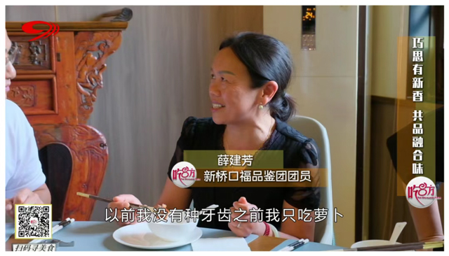 以多種醬料烹制而成,裹挾著濃郁醬汁的肉排與蘿卜令人口齒生香。但對(duì)缺牙人群而言,吸滿了湯汁精華的肉質(zhì)纖維極易塞牙,反而成了“美食禁忌”。餐桌上,只見(jiàn)種好牙的薛阿姨啃得自在,并表示:“現(xiàn)在我首先就是夾排骨!以前我沒(méi)有種牙齒之前我只吃蘿卜,因?yàn)椴桓乙У摹?rdquo;