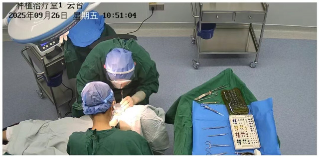 手術直播環節,黃杰主任在高清鏡頭下完整展示了種植體植入的全過程。手術出血少、創傷小、顧客配合良好,整個流程順暢高效,充分展現了數字化種植技術的精準與微創優勢。