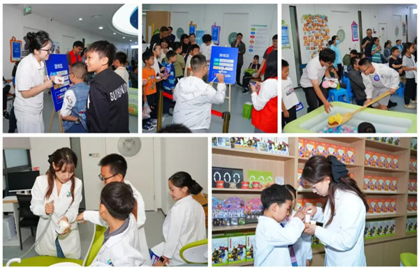 在游戲互動區域,豐富有趣的體驗項目全天滾動開放,成為賽事里的“溫馨補給站”:棋手與家長可共同參與“幸運牙牙樂”“投投樂”“看圖猜成語” 等親子游戲;更有深受喜愛的“小牙醫”體驗活動,孩子們能穿上專業“裝備”,沉浸式解鎖護牙新技能。