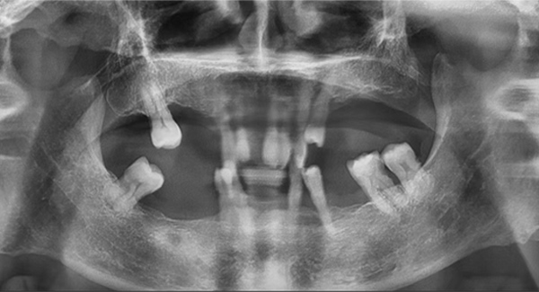 這個病例有一個特點,牙齒還在,但沒有功能。從表面看牙冠是完整的,但“金玉其外”,內部已經空了,牙根也爛穿了,無法咀嚼也失去了修復的條件,沒有保留價值。