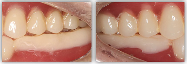 我決定做難但正確的事情。種植手術完成后,我讓患者戴上了樹脂義齒重建咬合,讓他通過日常的咀嚼,在原本平整的下牙義齒上慢慢形成新的尖窩對應關系。前后花了半年時間,才達到穩定且可重復的咬合狀態。這時候,再制作第二幅臨時義齒,也就是有解剖牙尖和尖窩交錯關系的臨時牙,讓患者再次適應咬合3個月。最后,我把患者適應并且滿意的咬合關系轉移到他的最終牙冠上,完成了修復治療。